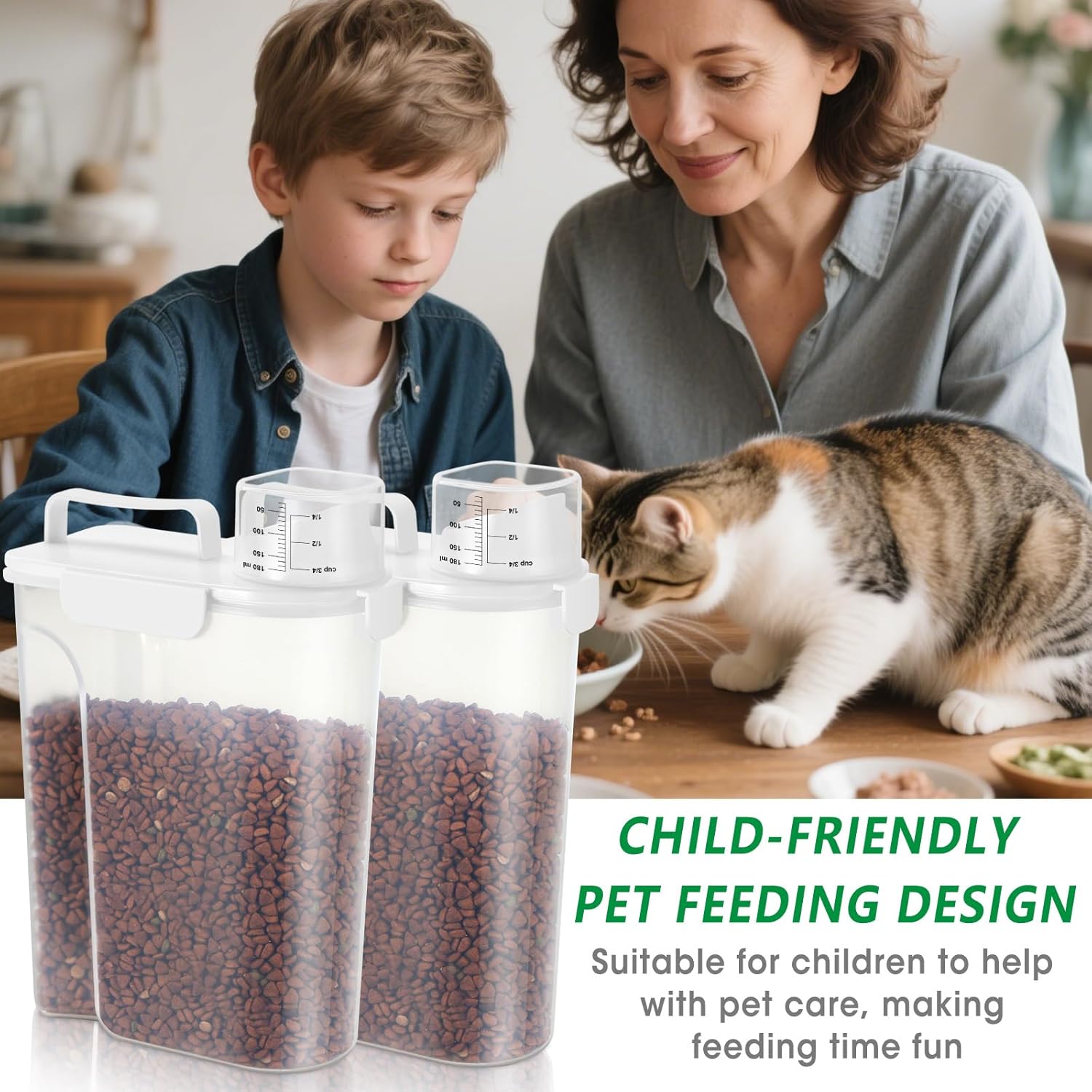 - Reliable Cat Food Container: The cat food storage container is made of BPA-Free material and durable construction, providing a healthy and convenient storage solution for your pet food