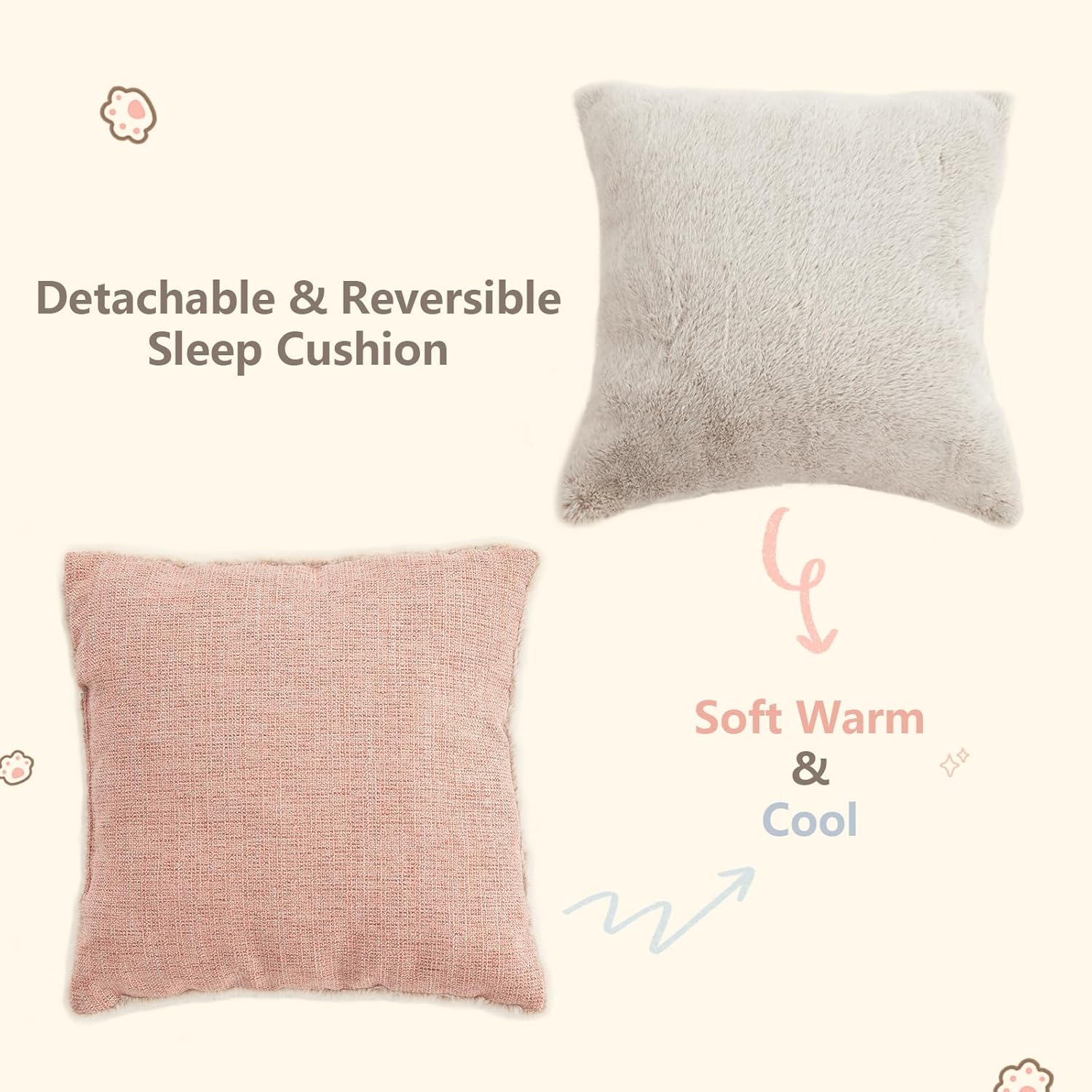 Cat Bed for Indoor Cats - Cat Cave Bed Cat House Cat Tent with Removable Washable Cushioned Pillow, Soft and Self Kitten beds,Cat Beds & Furniture, Pet Bed (Large, Pink)