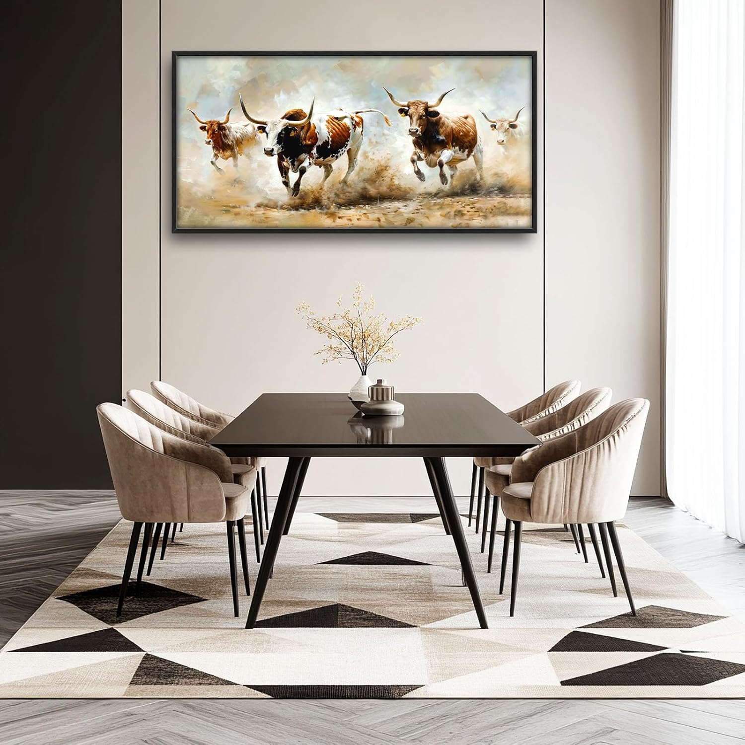 Highland Cow Large Wall Art Wild Animal Running Pictures Farmhouse Rustic Longhorn Wall Decor Canvas Print Painting Artwork for Bathroom Living Room Bedroom 60L" x 30W"
