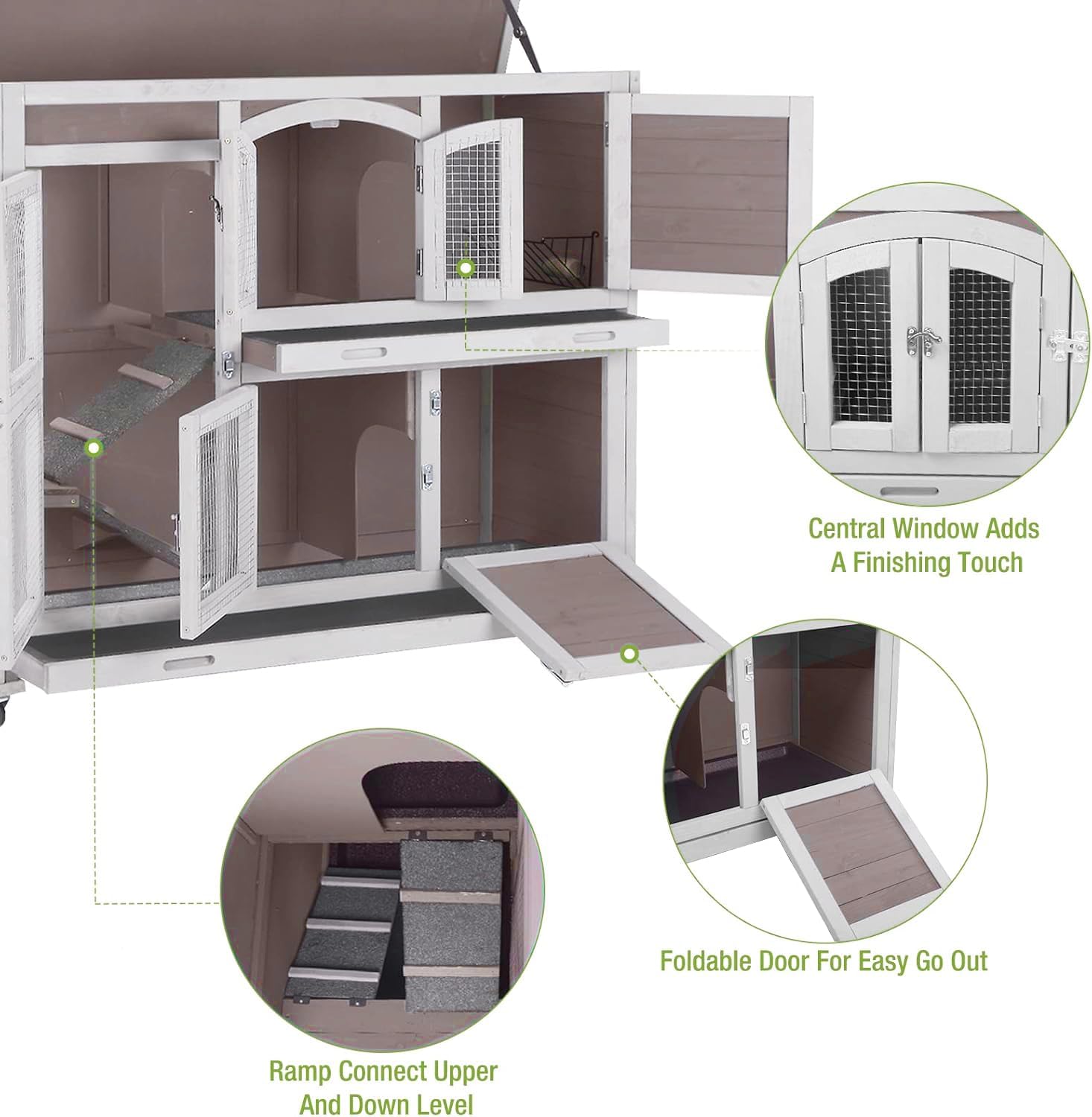 • Attractive Design: Central window adds a lots of funny, 4 lockable front doors provide unlimited view to bunny' activity