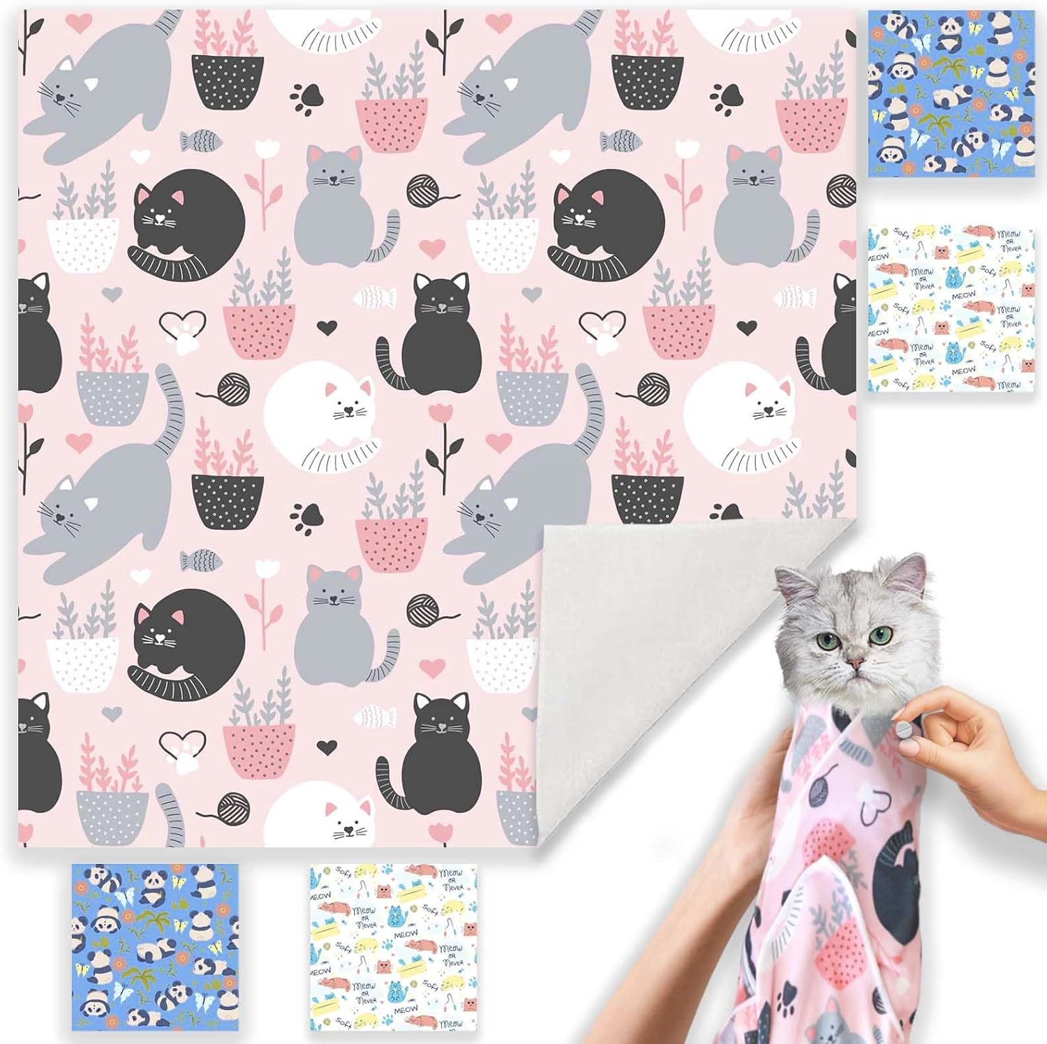 - 【2025 New Cat Grooming Wrap】This new cat wrap fabric features innovative patterns, including pink kitten and panda designs, providing you with a unique visual experience.