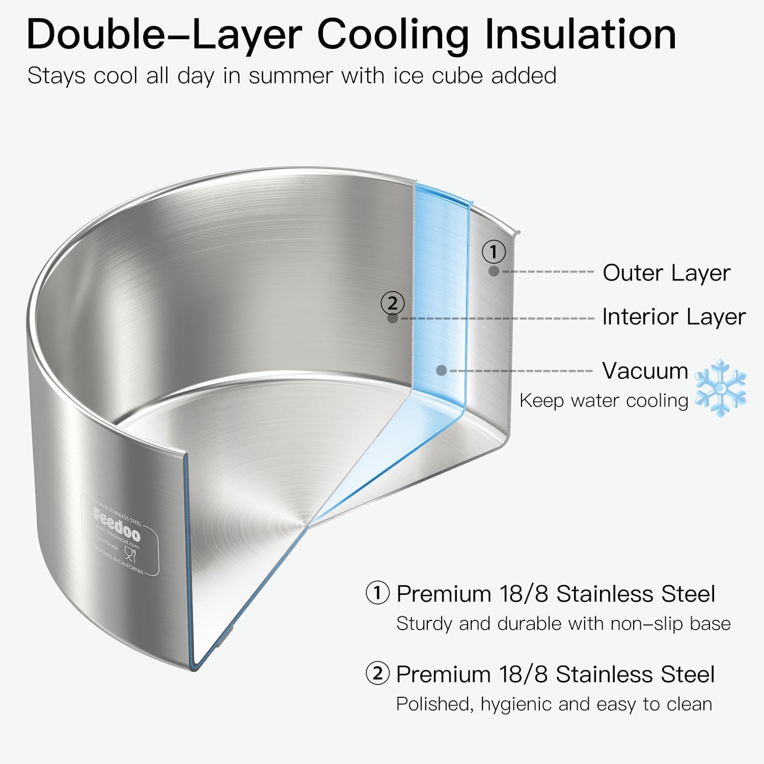 - 【Double-Walled Insulation】Crafted with premium double-walled 304 stainless steel to keep food or water at the perfect temperature longer, providing pets comfort in any season without condensation issues.