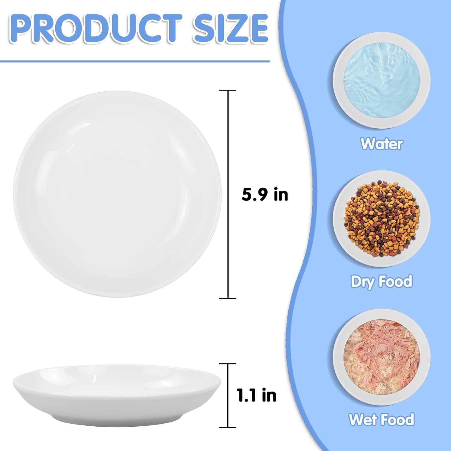 - 🐾【Flat Wide Bottom Design】The kitten food bowl is specially designed with a diameter of 15 cm and a height of 3 cm. The shallow cat bowl prevents the cat's appetite from being affected by whisker fatigue and keeps the face clean. The smooth bottom design prevents food from getting stuck somewhere on the cat food plate, making it easier for the cat to eat.