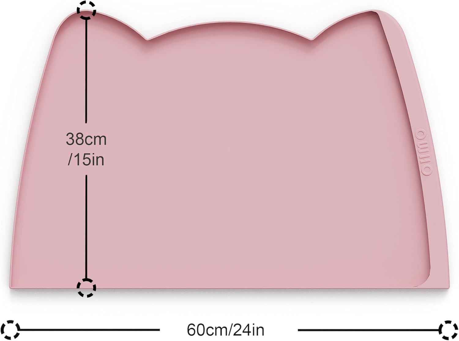 OHMO Dog Food Mat(Pink, 24 * 15'') w/Residue Collection Pocket Silicone Pet Feeding Mat for Floor High Edges Anti Spills Waterproof Cat Water Bowl Tray, Easy Clean Placemat