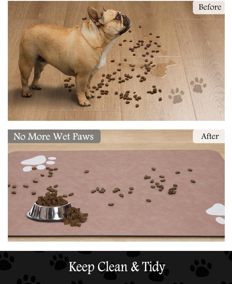 - Pet Supplies: This feeding & watering mat Suitable dog cat puppy or other pets. Not only can be used for pet food and water bowls or automatic feeders, but it can also be used as a special drying mat for pet bowls. Let your beloved pet have a whole set of exclusive supplies.