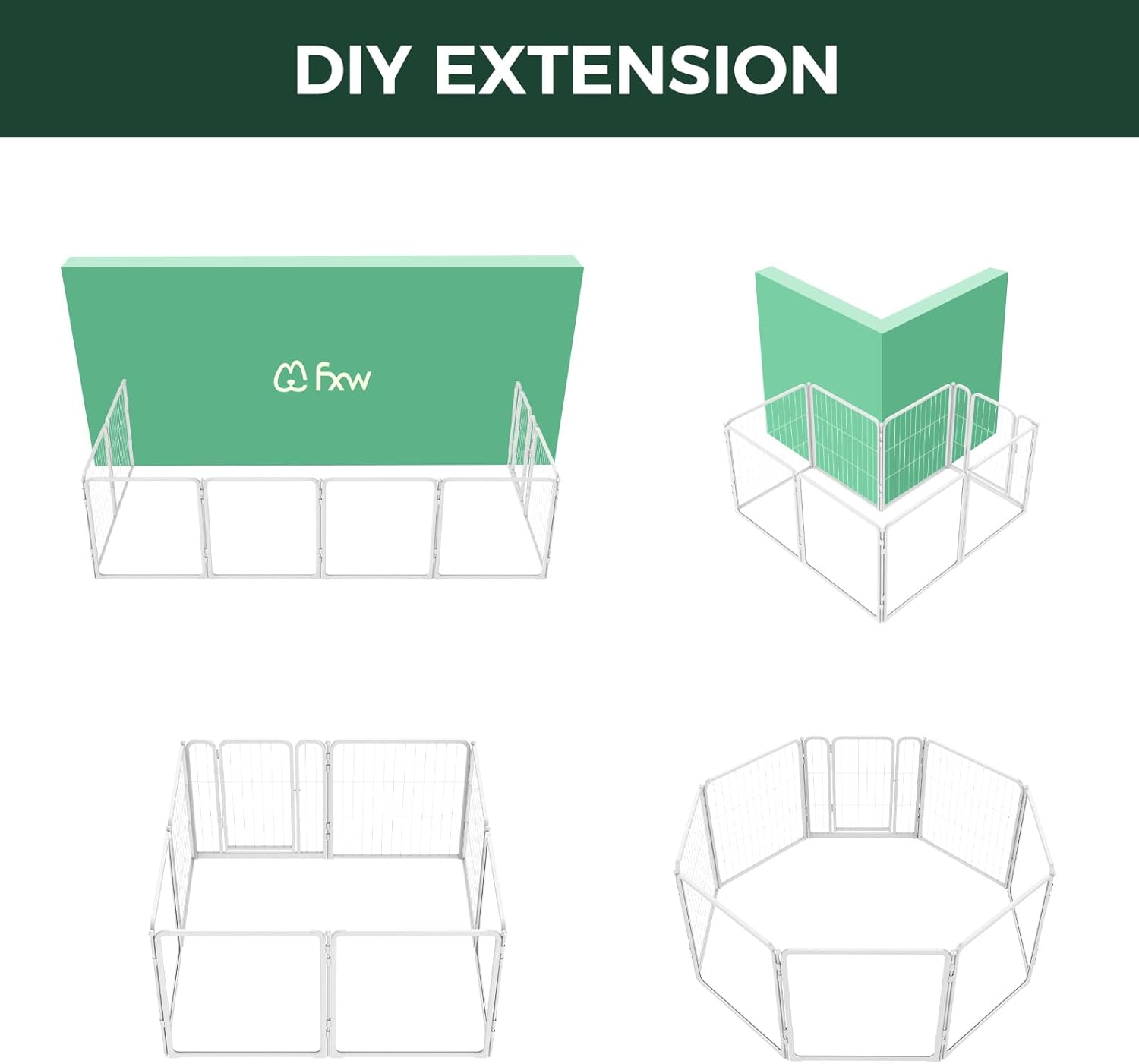 FXW Homeplus Unleashed Indoor Dog Playpen - Stress-Free and Safe Play, Heavy Duty 24 Inch 4 Acrylic Panels + 4 Wire Panels Dog Pen for Puppy and Small Dogs, White│Patented