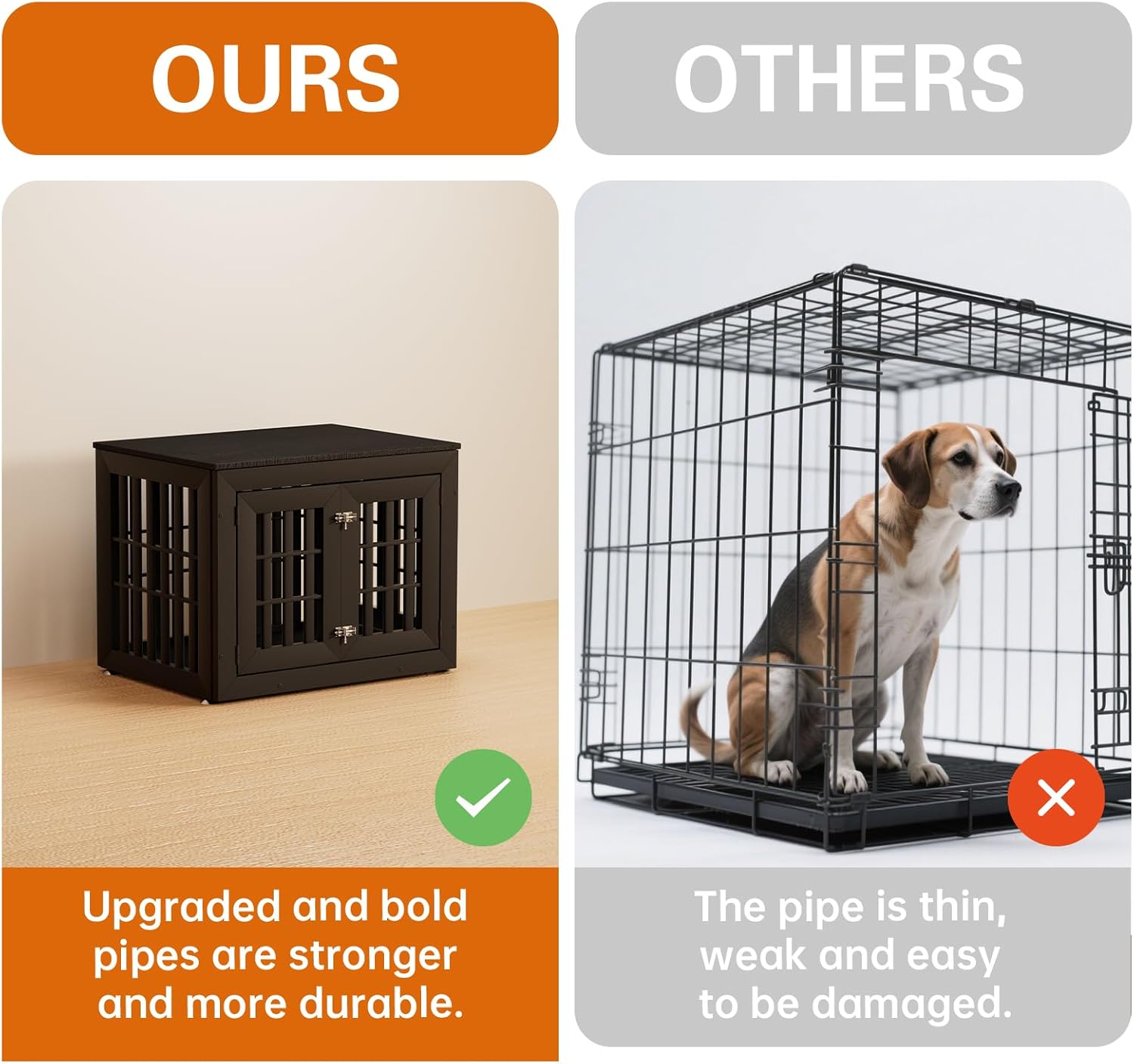 - 【Dog Crate End Table】This dog crate furniture not only provides a safe and cozy shelter for your dog but can also be used as a side table, end table, and nightstand. The wide sturdy top can hold pet supplies, photo albums, and potted plants,suitable for various decoration styles, adding a stylish touch to your home decor.