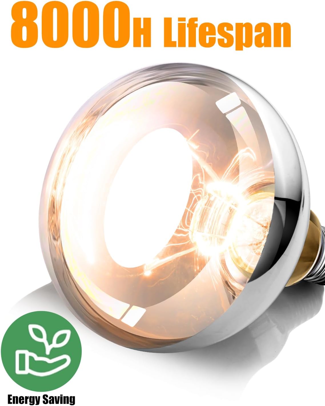250W Heat Lamp Bulbs, 8000 Hours Rated, R40 Bathroom Shower Incandescent Light Bulb, Infrared Heating for Chickens, Reptiles, Pets, Food, E26 Base, 2 Pack