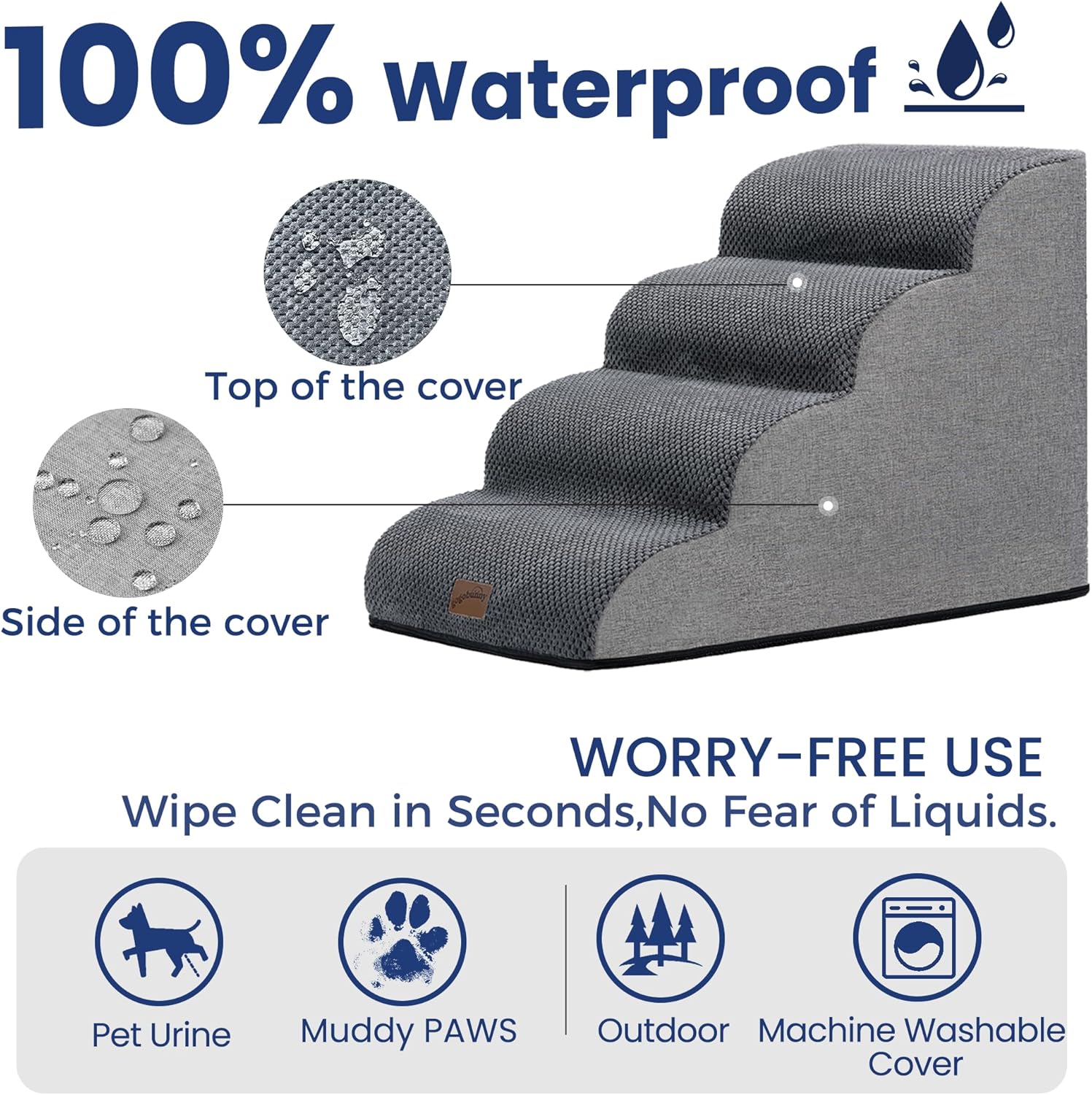 - Waterproof & Non-Slip: The thick coral fleece ensures safe climbing, and the waterproof backing prevents accidents. The dog ladder's sides are made of wear-resistant linen with a waterproof layer to prevent PAWS/urine. Non-slip base grips hardwood/tile floors securely for stable climbing