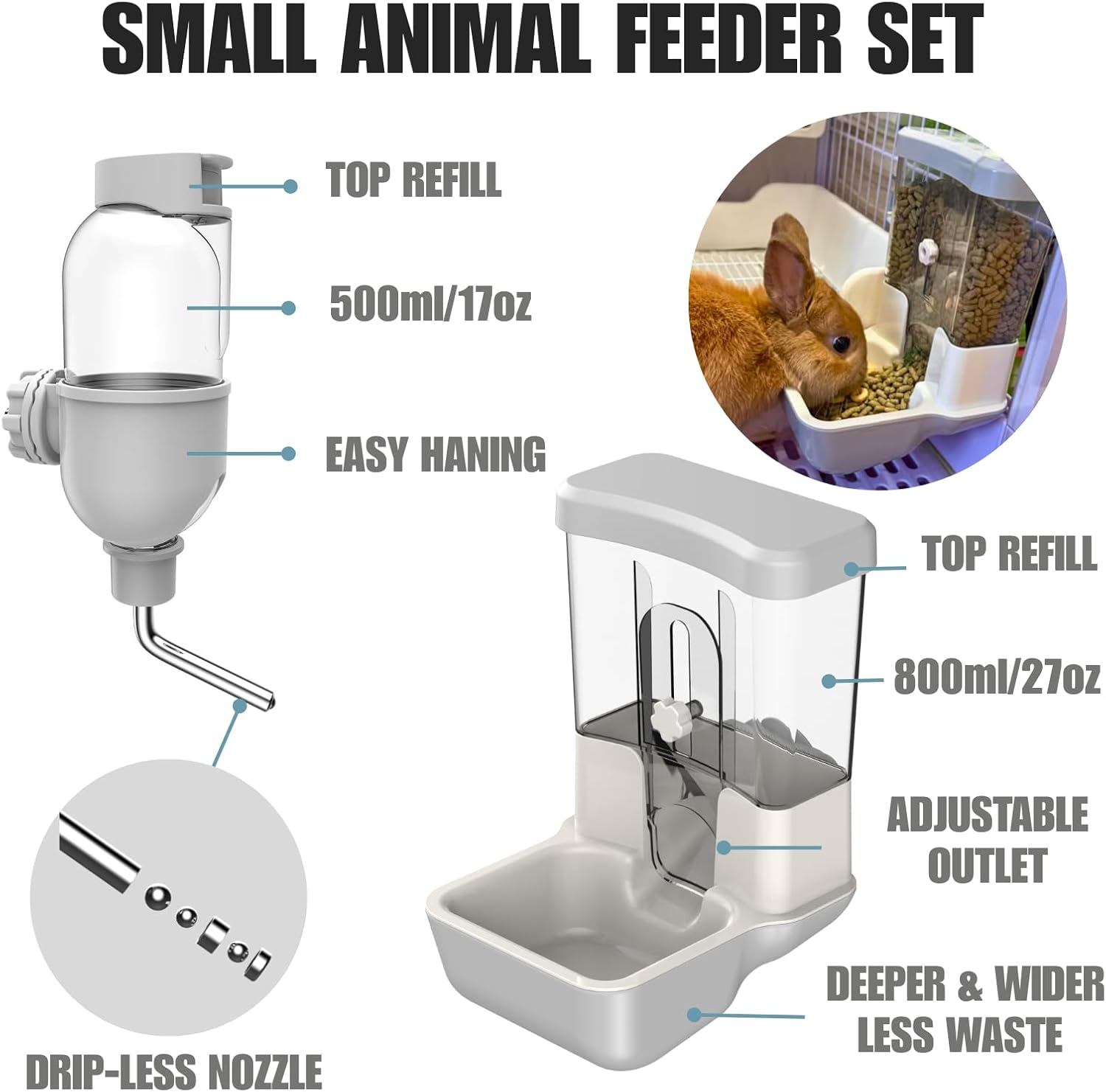 Automatic Pet Food Water Dispenser, Auto Gravity Pet Feeder Water Bottle Set for Crate Cage, Feeding Station for Small Dog Cat Rabbit Guinea Pigs Chinchilla Ferret Hedgehog (Blue)