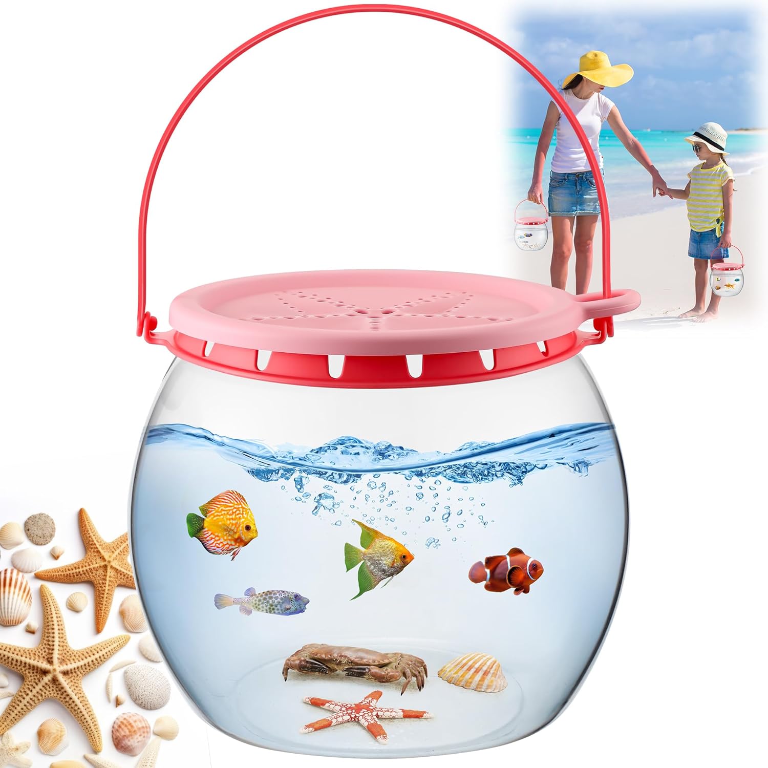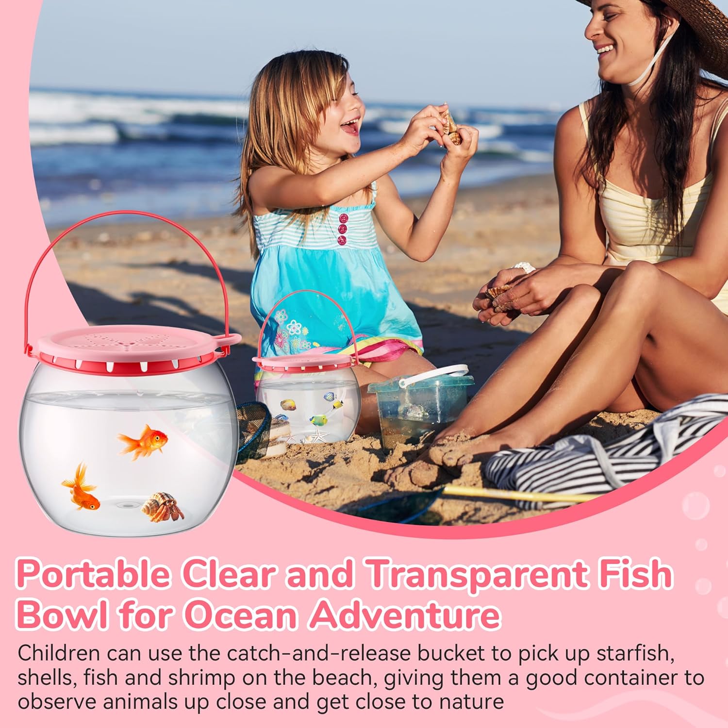 Saillong Catch and Release Plastic Small Bowl Kit, Portable Clear and Transparent Fish Bowl for Ocean Adventure, 0.8 Gallon Outdoor Cartoon Starfish Bucket Kit Ideal for Pool and Lake, Beach
