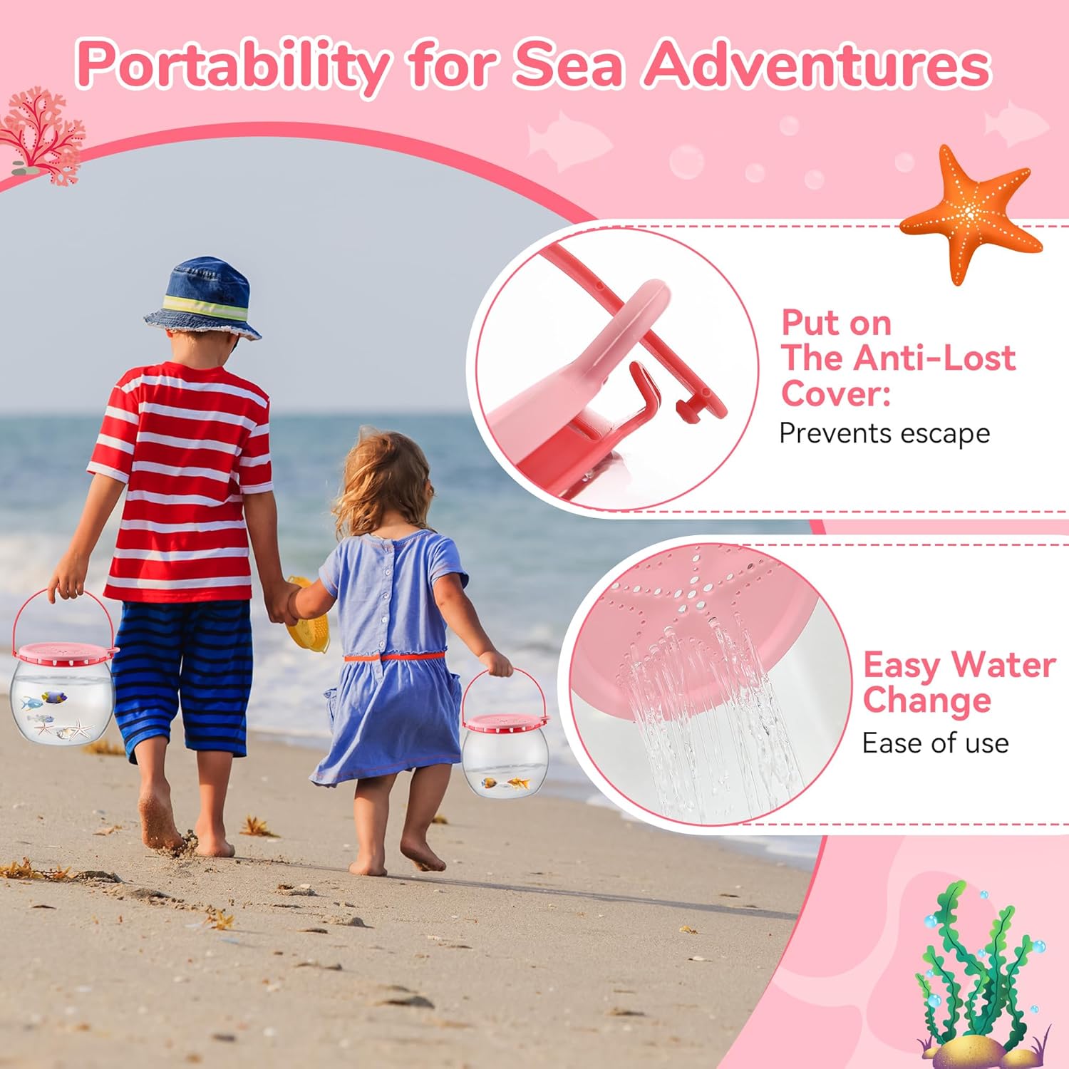 - Portability for Outdoor Adventures: This small catch and release bowl measures 7"L x 7"W x 6"H, suitable for briefly holding and observing small animals, similar to the storage box design with handles, easy to carry and use. The sturdy handle is made of waterproof and durable thick rope and wrapped with a sponge pad, even if it is filled with water, kids can easily carry it to catch small animals on the beach