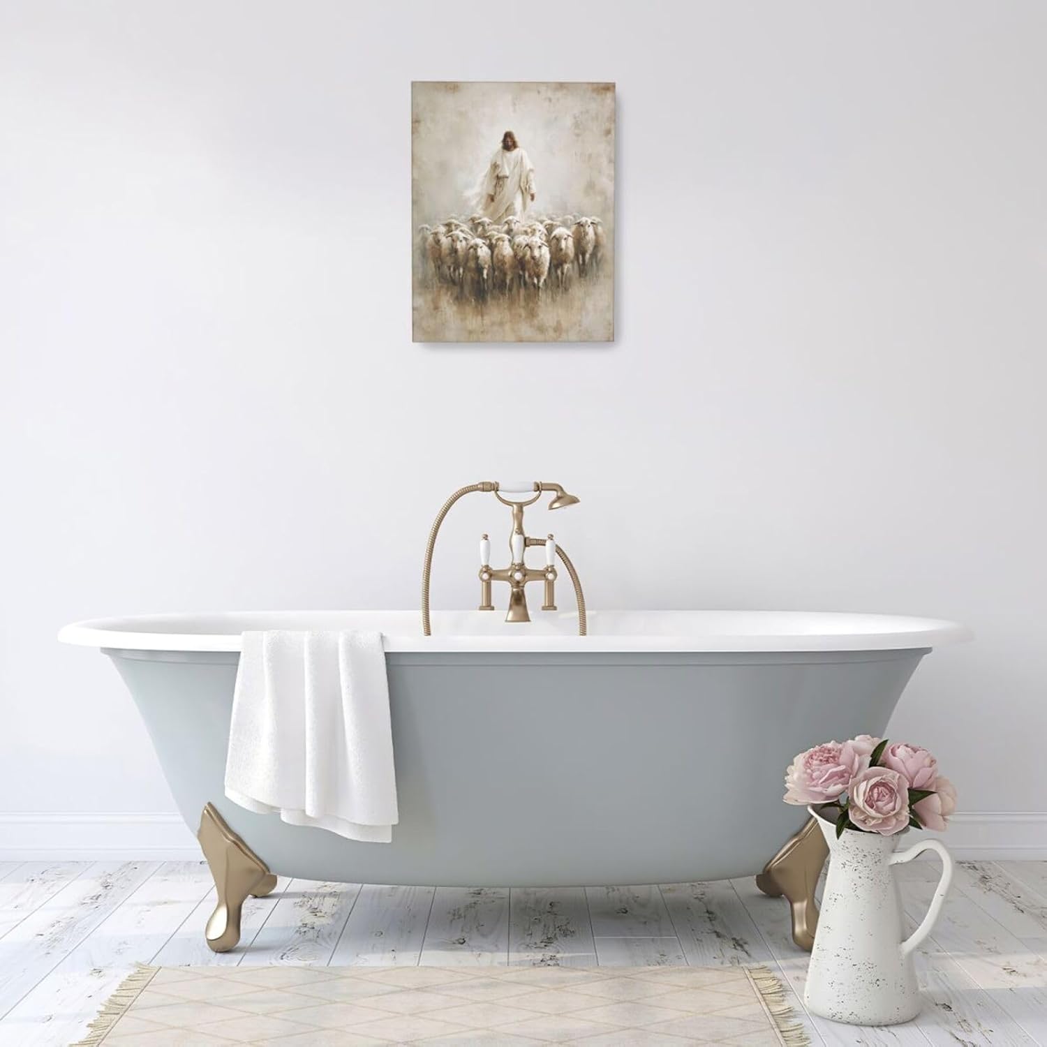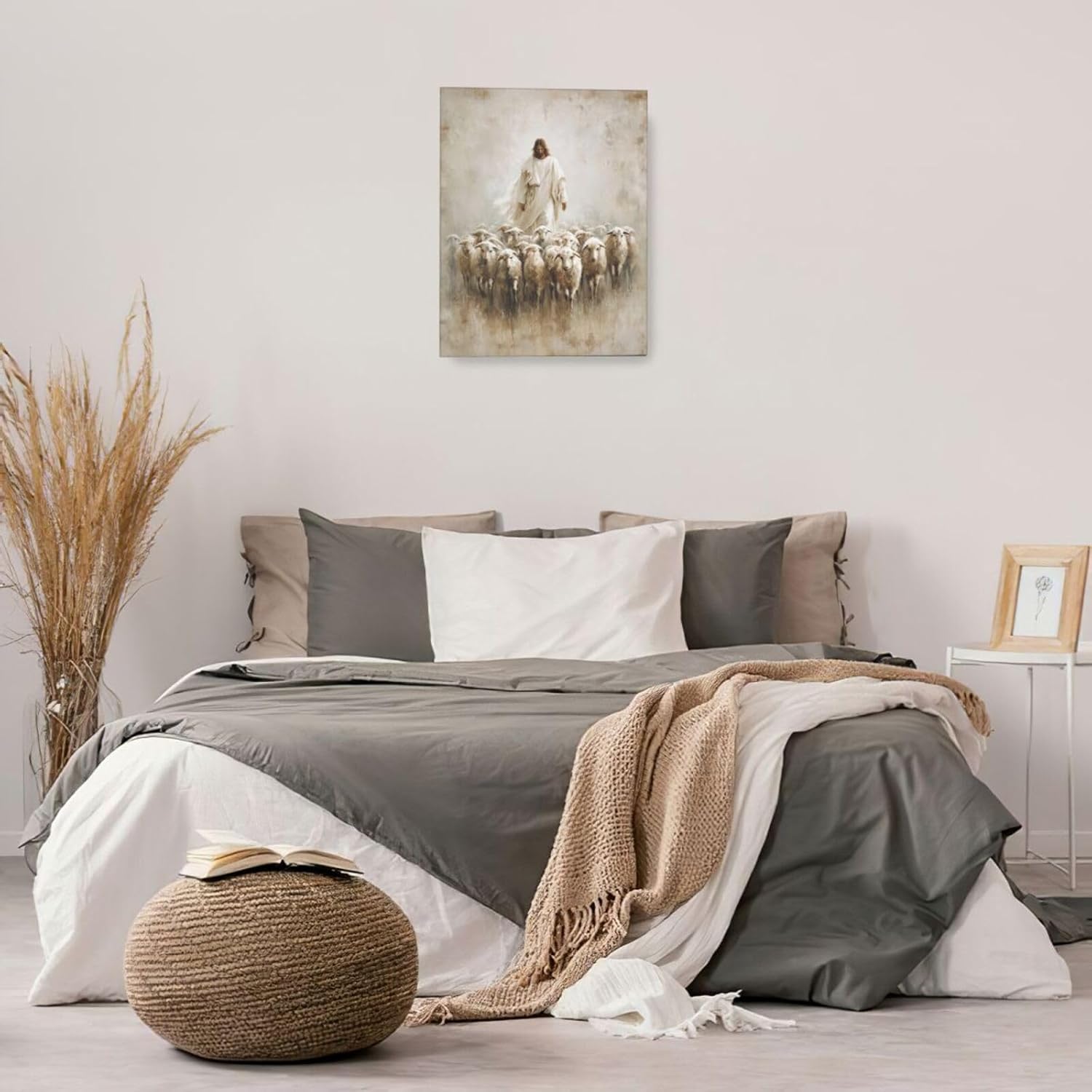 Jesus and Lamb Wall Art Christian Jesus Lamb Canvas Wall Decor Christ Religious Pictures painting Print Framed Artwork Decorations Gifts for Living Room Bedroom Prayer Room Church 16"x20"