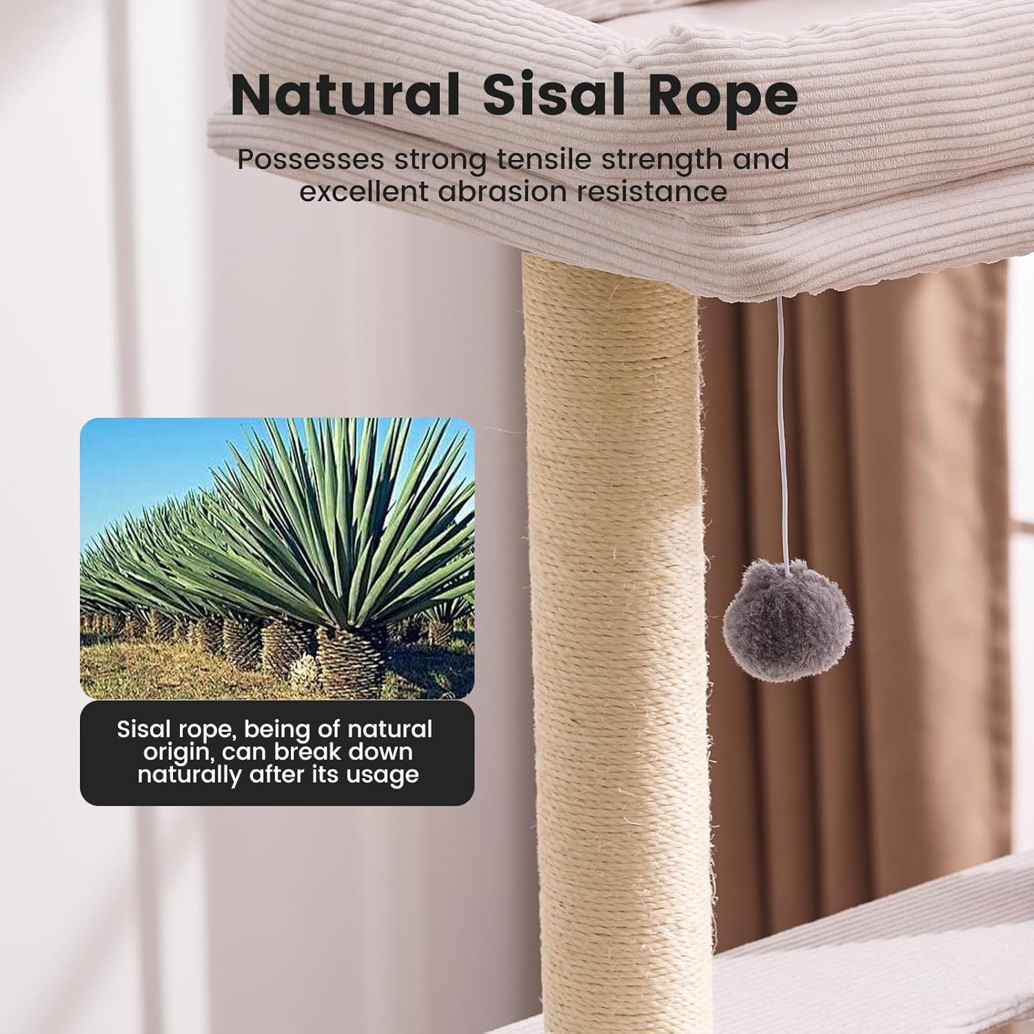 • [Safe & Durable Materials | Pet-Approved] 🌿Eco-Friendly MDF Board: High-density, warp-resistant, for long-lasting safety. ✋ Natural Sisal Wrapped Posts: Protects furniture while satisfying cats' scratching instincts.