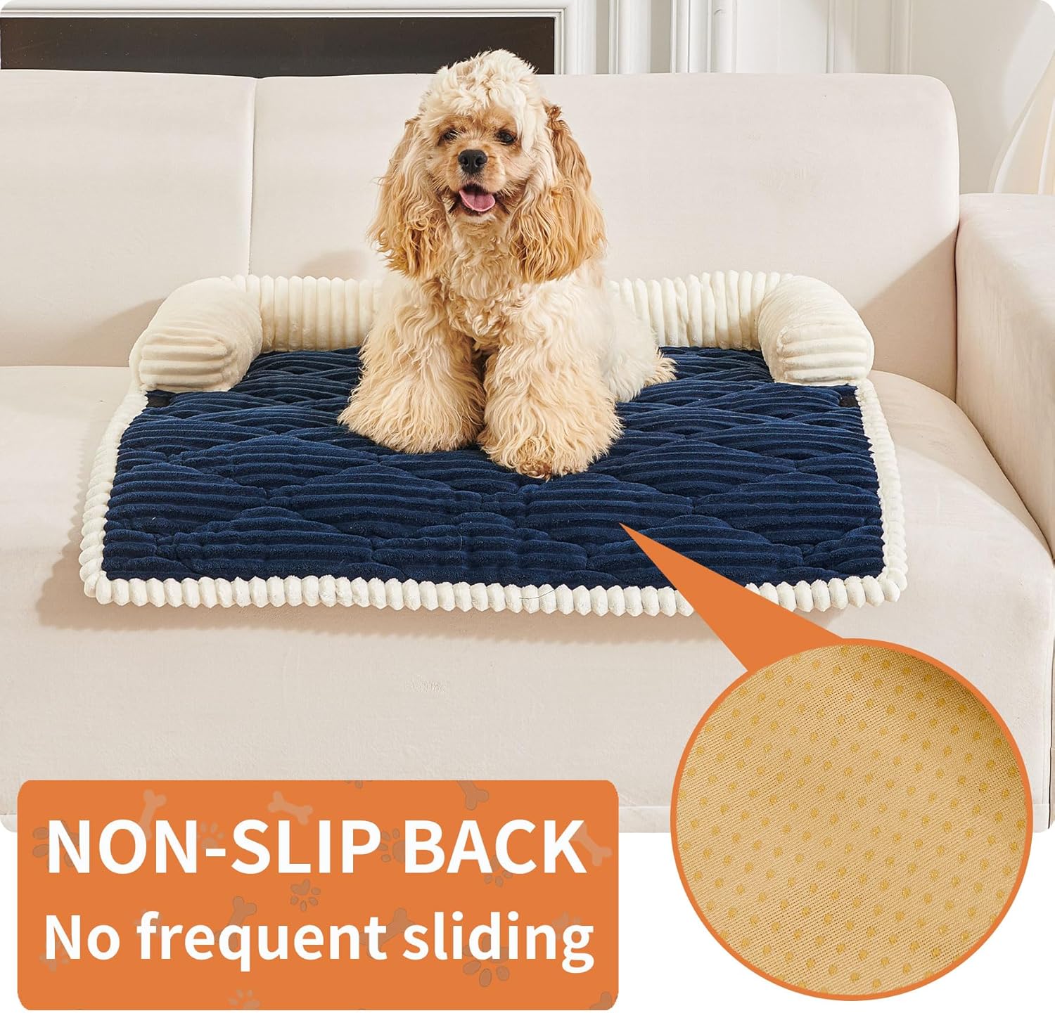 • EXCELLENT NON-SLIP:The back of the non-slip dog bed couch is made of silicone particles adhesive layer, which can achieve a firm fit without displacement. Even if your pet is jumping around on the sofa, dog bed for couch can firmly grasp the surface of the sofa and always keep its position fixed. As a dog bed for couch it also fully protects the sofa from pet scratch marks, hair adhesion and daily stains and wear and tear, making the furniture last as long as new.