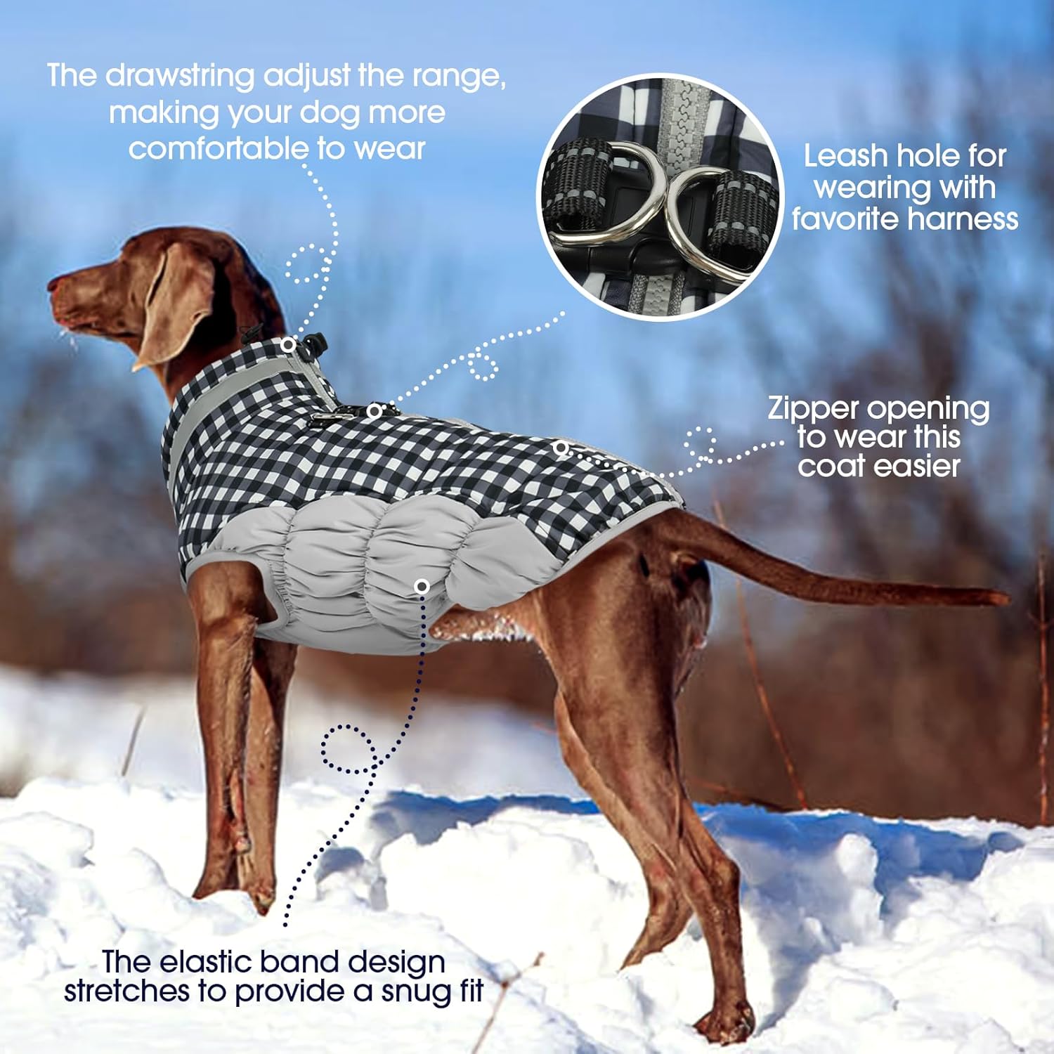 • Harness & Zipper On The Back:Say goodbye to the struggle of dressing your dog! FUAMEY dog snow jacket with zipper on the back and harness built in.The zips have been upgraded and are now very durable.Back harness allows for easy access on the go,allowing you to clip the leash directly to the jacket—no need for a separate harness or collar
