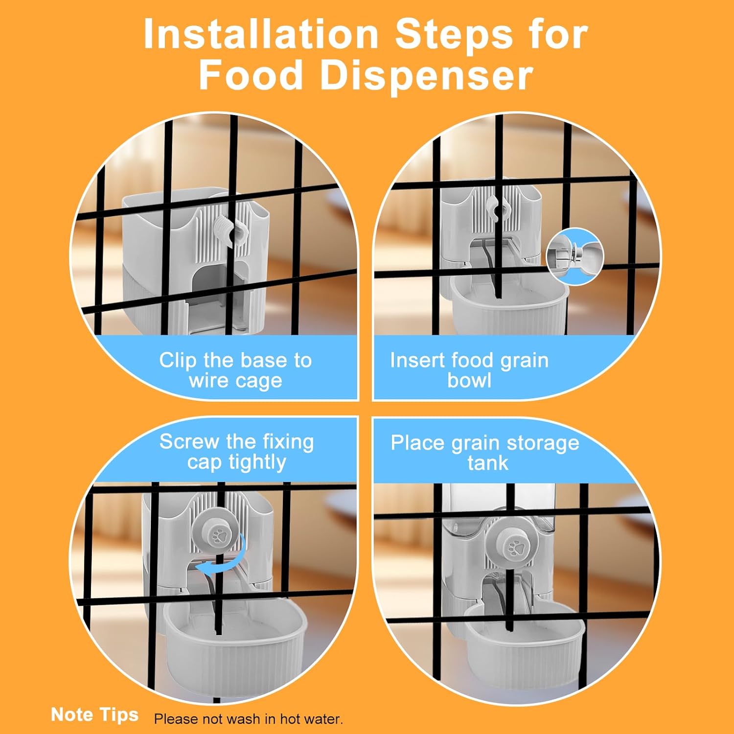 - Automatic Refilling Design: This cage hanging pet food feeder can provide plenty of food by natural gravity supply design. The gravity auto-refill feeder with a 75Β° sloping ramp and 5cm food outlet, pet grain can be smoothly replenished, reduce jam food.