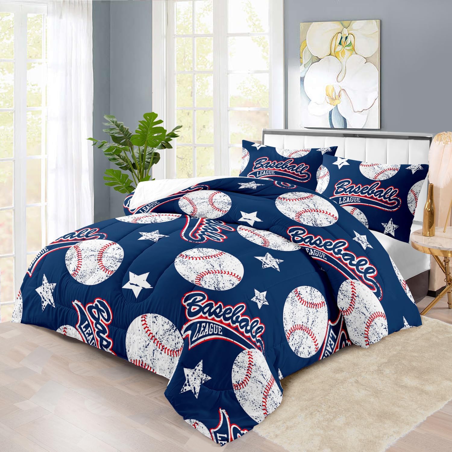 Baseball Comforter Set Twin,Sports Bedding Sets for Boys,Blue Sports Comforter Twin Bedroom Decor,Baseball Bedding Teen for All Seasons,Blue Quilt Kids Bedroom Decor
