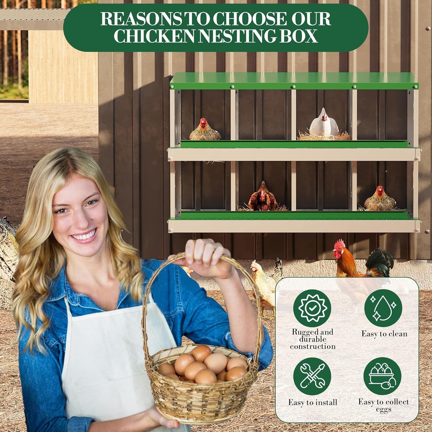 8 Hole Chicken Nesting Box with Roll Out Egg Tray, Rustproof & Ventilated Chicken Laying Boxes for Hens, Chickens, Ducks | Easy-Clean Poultry Coop Accessories