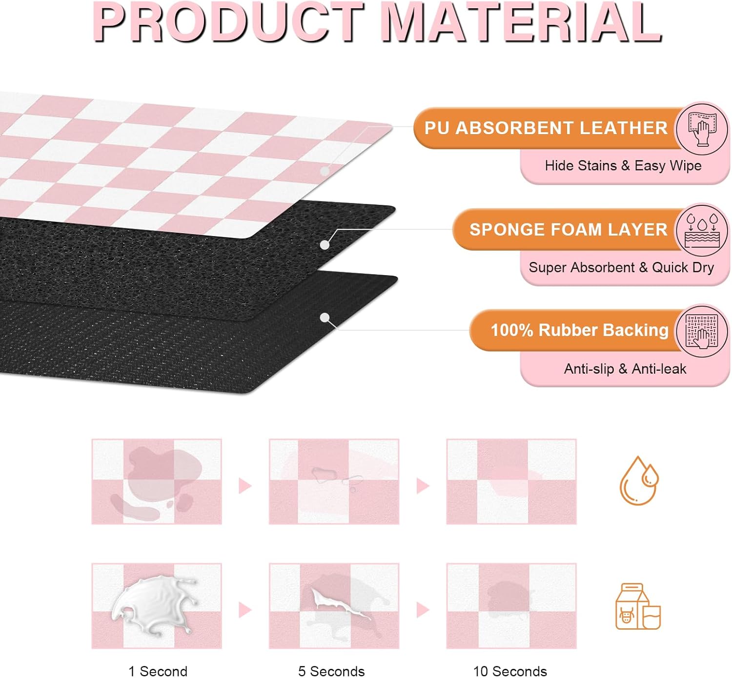 Cat Food Mat - 12"x 20" Cat Dog Mats for Food and Water Bowl, Checkered Pet Placemat Feeding Mat, Non-Slip Under Pet Bowls Mats for Messy Drinkers, Pink & White